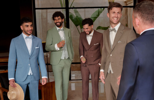 Länge har blått och grått dominerat det manliga bröllopsmodet, men äntligen ser vi lite fler färger på marknaden.
