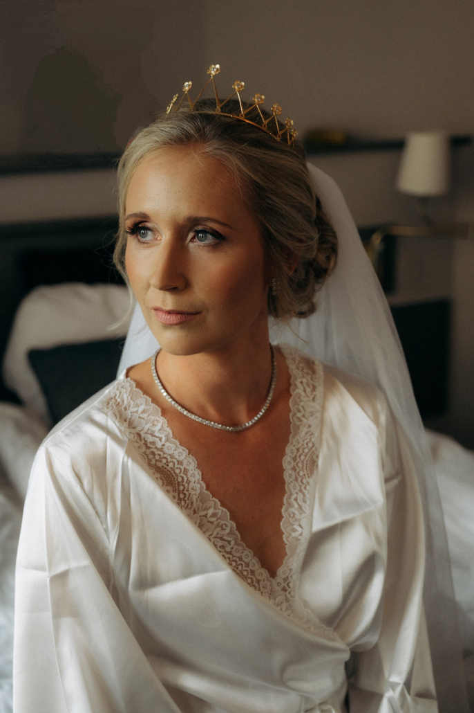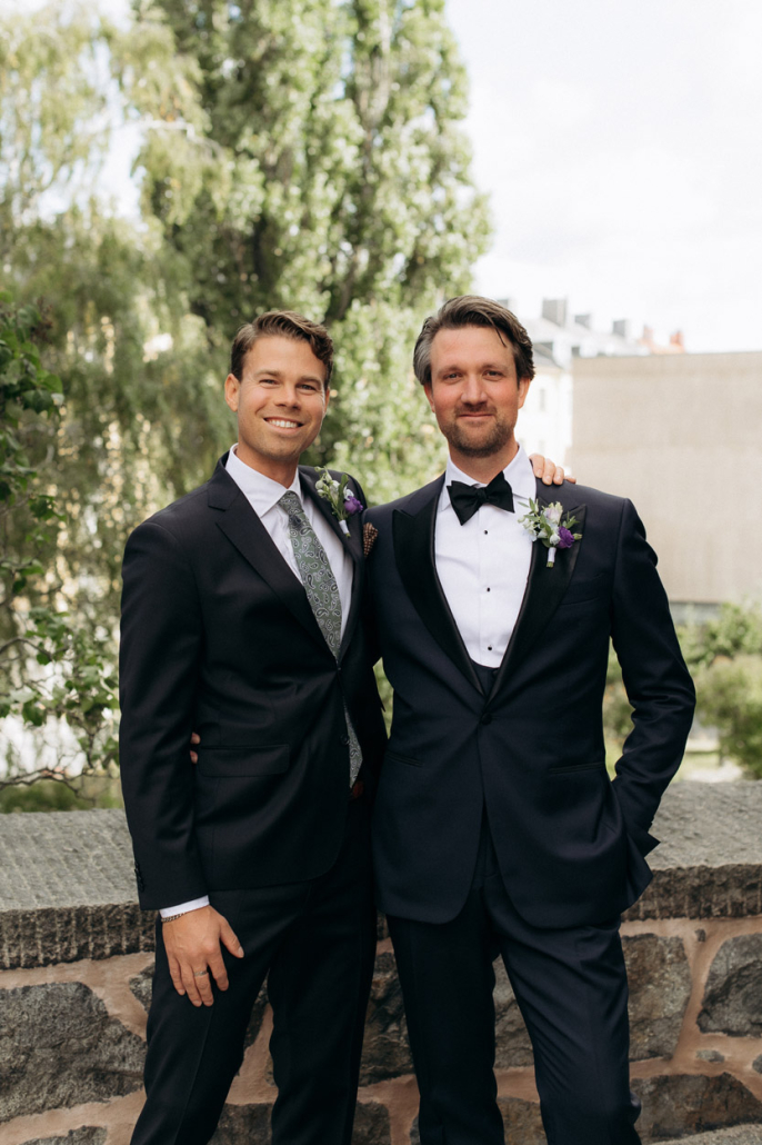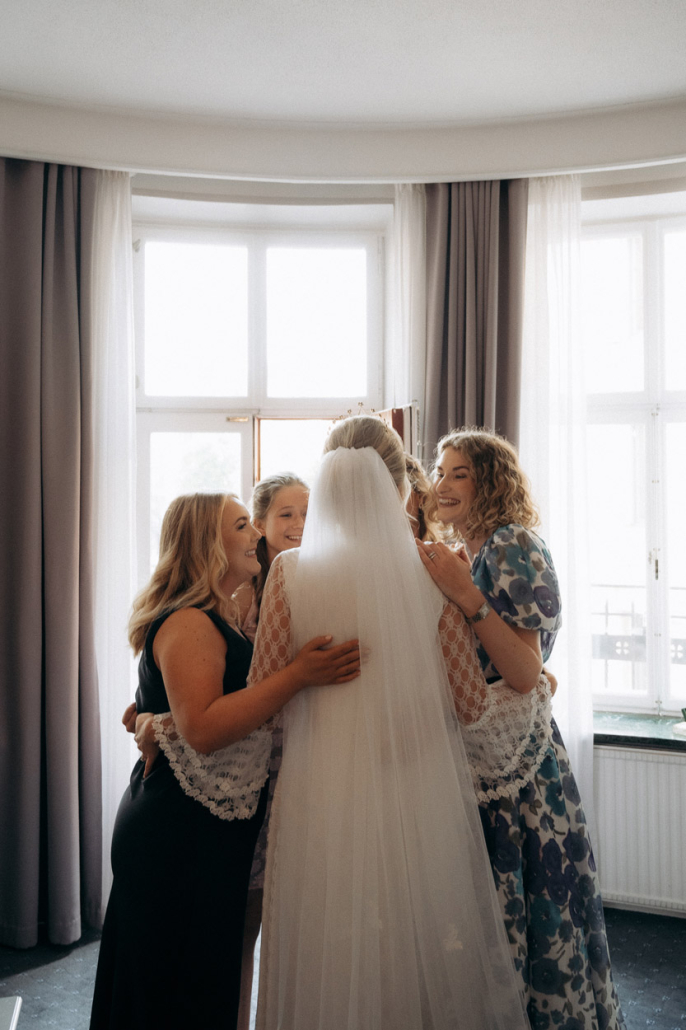 Vi bestämde oss för att checka in på hotell natten innan bröllopet även fast vi bodde i närheten. Under 2023 föddes vår son Leonard, så det kändes skönt för oss att lämna honom till morföräldrarna och kunna landa själva i vad vi hade framför oss och vara säkra på att få en ordentlig natts sömn. På den stora dagen lämnade Viktor hotellet för att vara med sin bestman och till bruden på hotellet kom ett helt enourage med tre tärnor, make up artist, frisör och även en brudnäbb. Det var härligt att få bli så ordentligt ompysslad och uppiffad tillsammans med underbara vänner, speciellt när man har varit föräldraledig i ett helt år och kanske inte alltid har lagt tid på den biten.