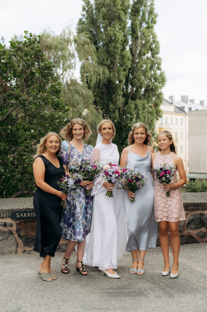 Väl klara med förberedelserna så åkte vi till kyrkan för en “first look” innan övriga gäster skulle anlända. Vi hade sett ut en plats bredvid kyrkan med stan i bakgrunden där vi ville se varandra för ”första” gången. Viktor och hans bestman tappade bort tiden lite under förberedelserna så Charlotte och tärnorna fick vänta en stund på att herrarna skulle komma, men fint folk kommer väl lite sent, och när alla var på plats så gick allt enligt plan.
