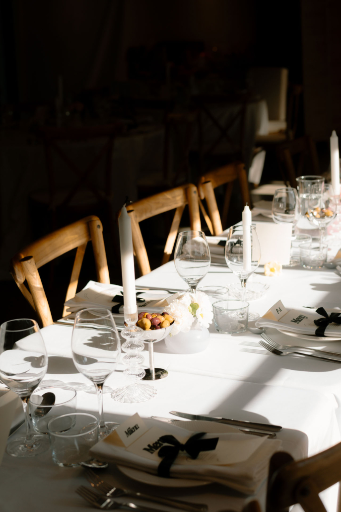 Vi pysslade ihop en genomgående design som skulle synas i allt – från inbjudan som gästerna fick i brevlådan till menyerna som låg på de färdigdukade borden.