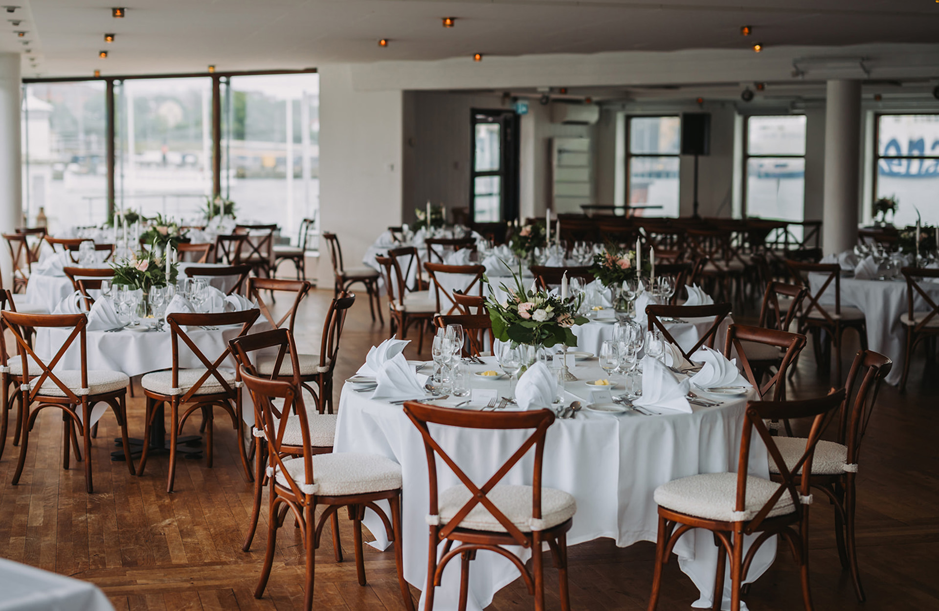 Närheten till vattnet & de många möjligheterna vi kan erbjuda gör River restaurant till en mycket uppskattat plats för bröllopsfesten.