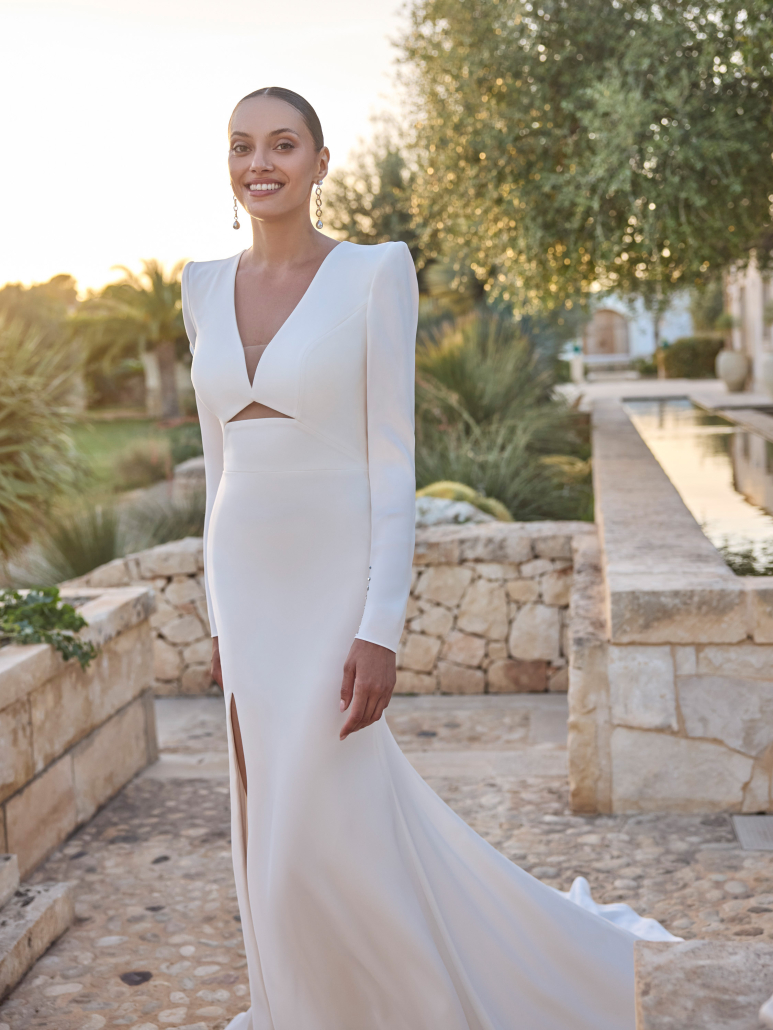 För brudar som dras till det enkla och sofistikerade erbjuder Modeca minimalistiska klänningar med rena linjer, utsökta material och en diskret elegans. Detta är trenden för den som vill ha ett uttryck som är både modernt, smakfullt och helt självsäkert i sin enkelhet.