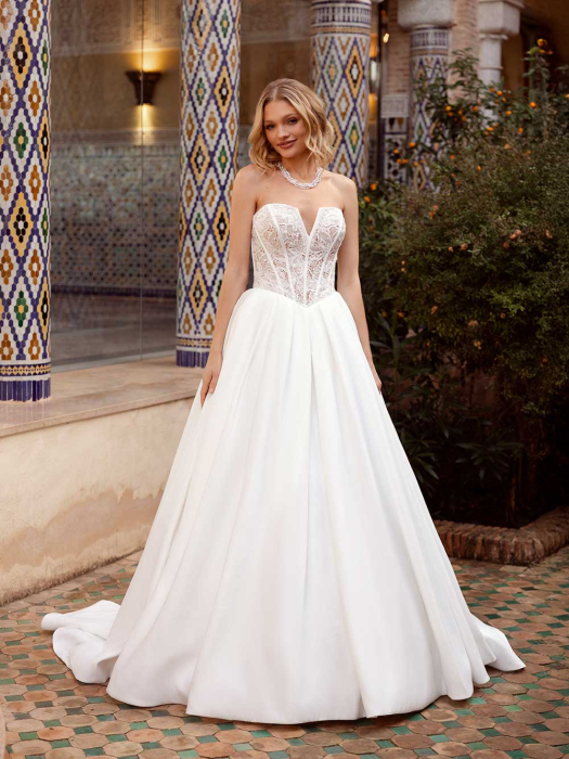 Dansa hela natten i den här unika och härliga klänningen som kan sättas ihop på flera olika sätt – antigen med helt kort kjol eller med en kjol som är kort framtill och har släp baktill. Klänningen finns även med en ursnygg avtagbar glittrig bolero. Se alla versioner på länken!