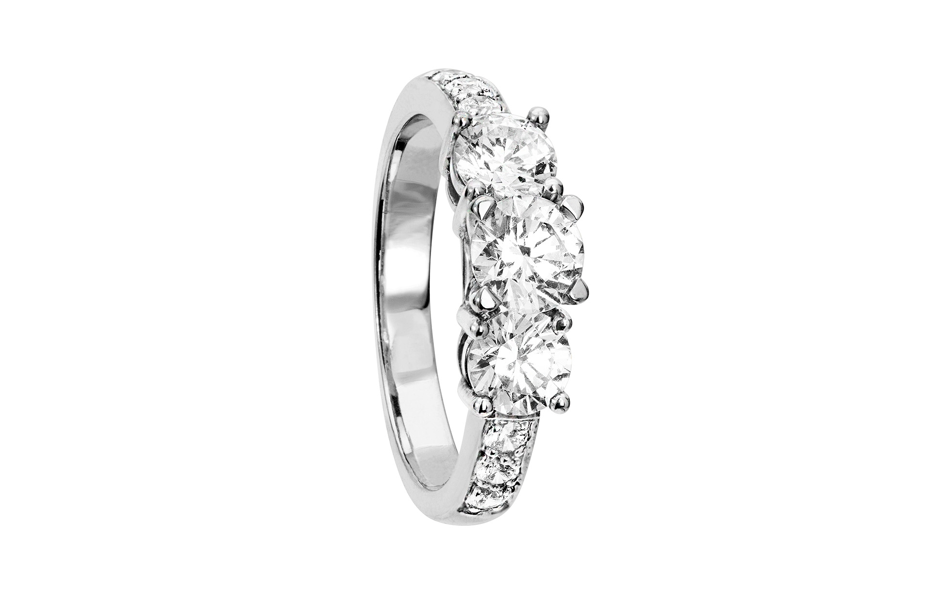 Ring Aurora i 18K vitt guld med tre GIA-certifierade diamanter 1,73 ct WSI i mitten och sex sidodiamanter totalt 0,27 ct WSI