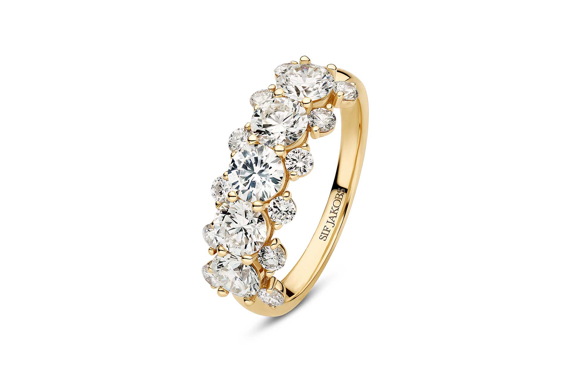 Ring tillverkad av 14k guld med polerad yta, infattad med 2,30 ct runda labbodlade diamanter. Diamanterna har färgen TW G-H och klarheten VS, vilket ger en briljant glans.