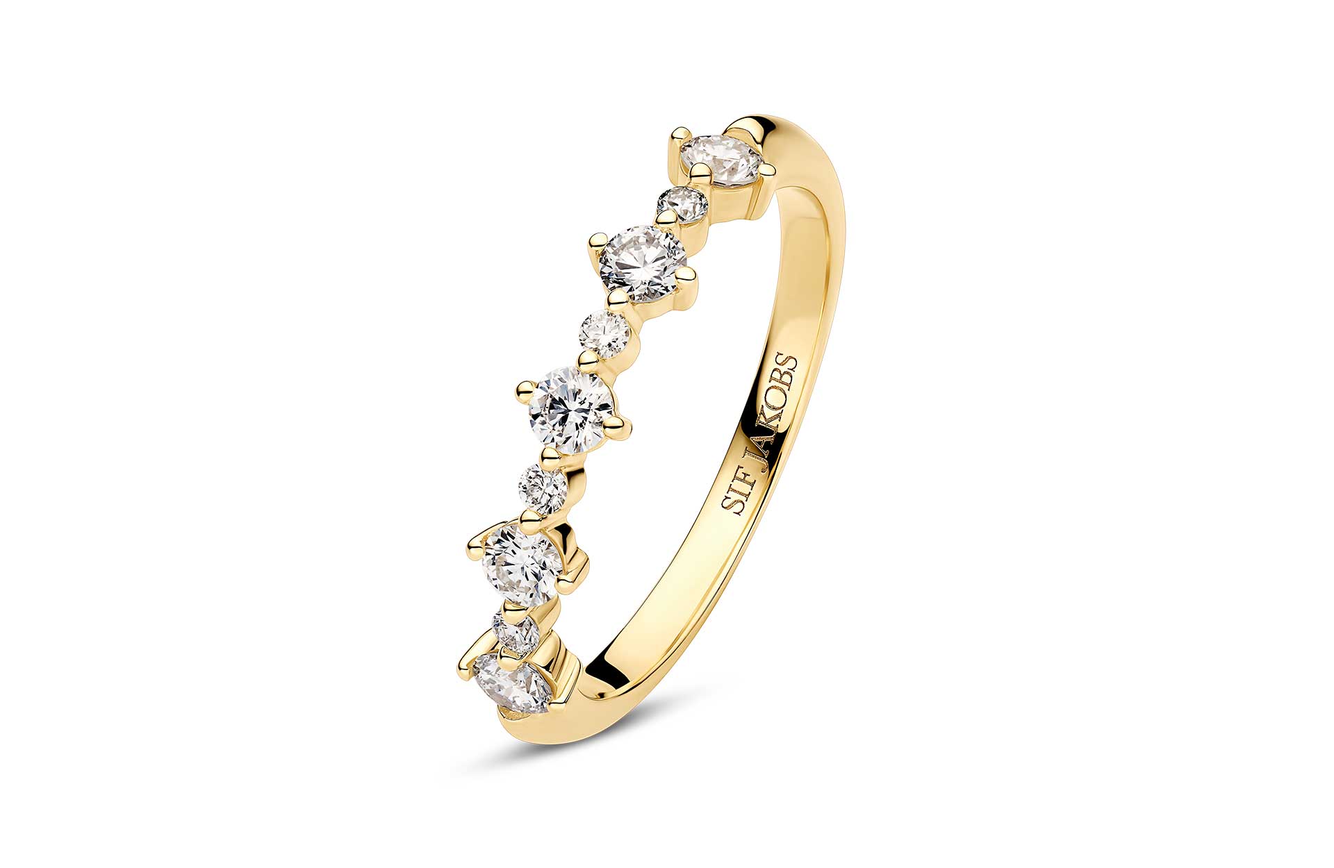Ring tillverkad av 14k guld med polerad yta, infattad med 0,50 ct runda labbodlade diamanter. Diamanterna har färgen TW G-H och klarheten VS, vilket ger en briljant glans.