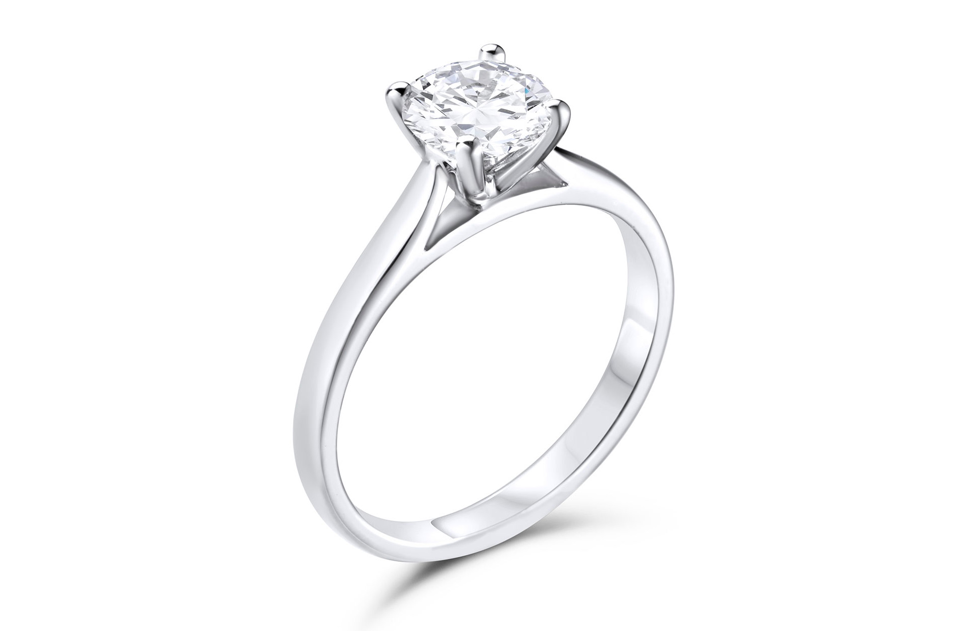 Klassisk Solitärring i vitguld med briljant i fyrklofattning.
