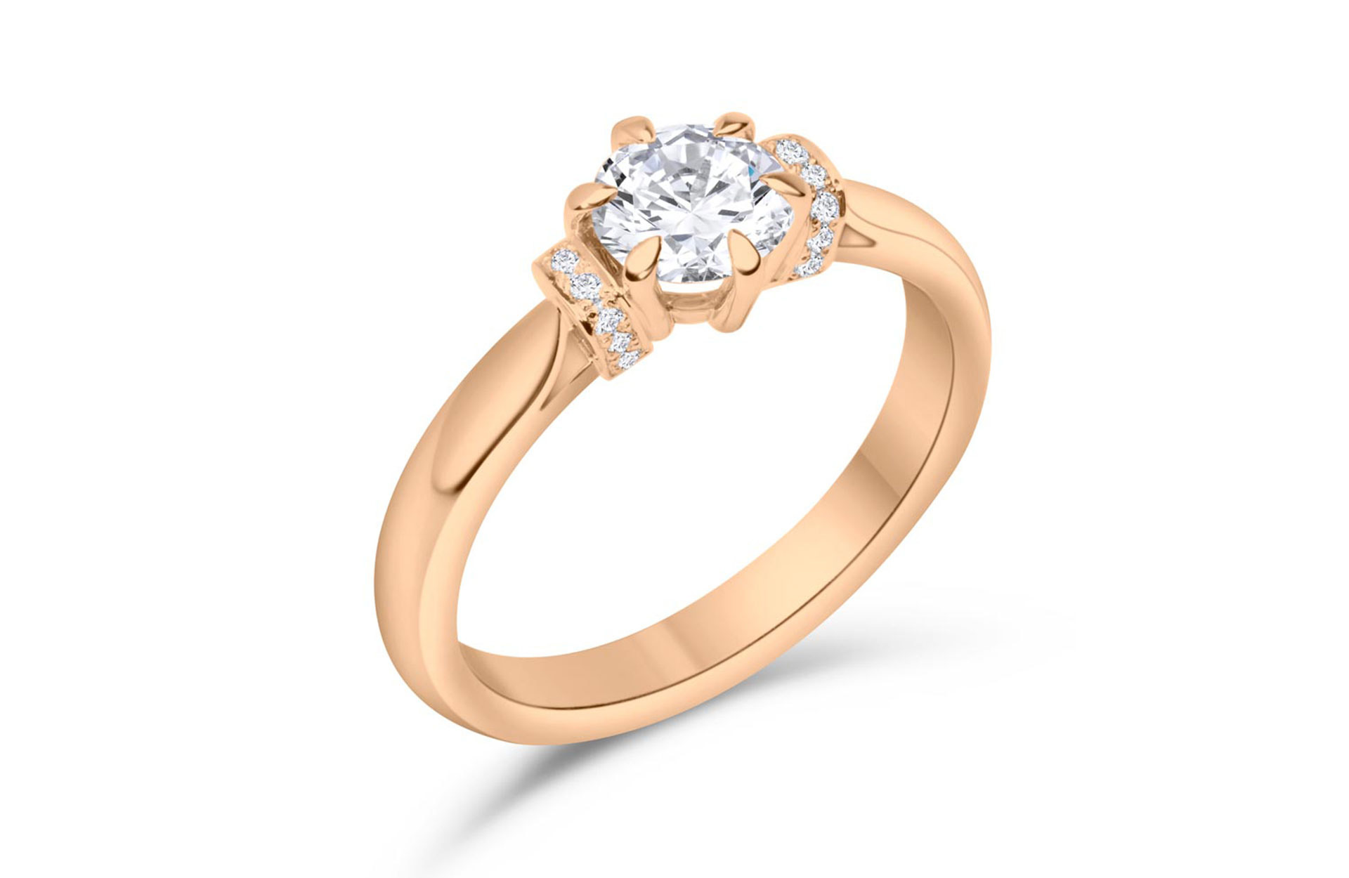 Band med diamanter ramar in den runda centerstenen och ger denna Solitärring en känsla av lyx.