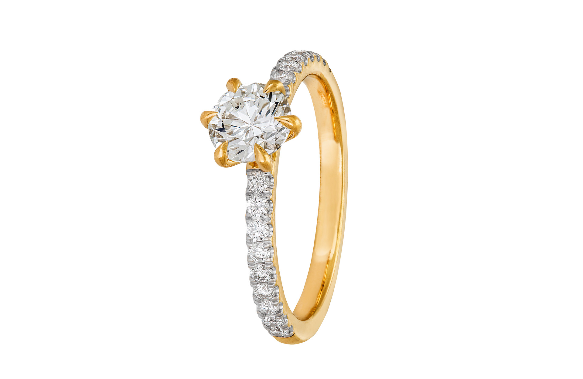 Ring i 18K återvunnet guld med en GIA-certifierad diamant och 18 sidodiamanter totalt 1,00 ct WSI