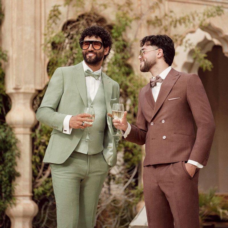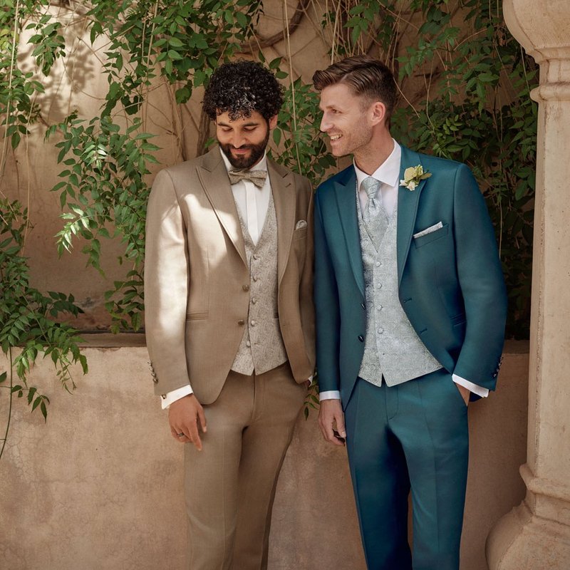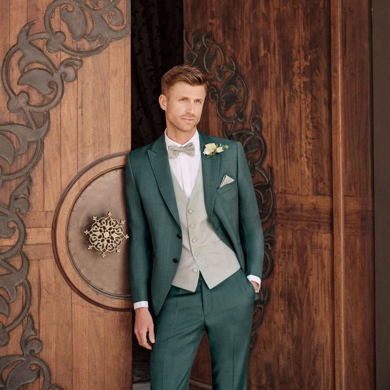 2026 är året då färg verkligen gör entré i brudgummens garderob. Vi ser många olika färger på kavajer och kostymer, i allt från djup burgundy och smaragdgrönt till ljusa pasteller som lavendel och puderrosa. Olika nyanser av bruna och jordnära toner är extra heta.